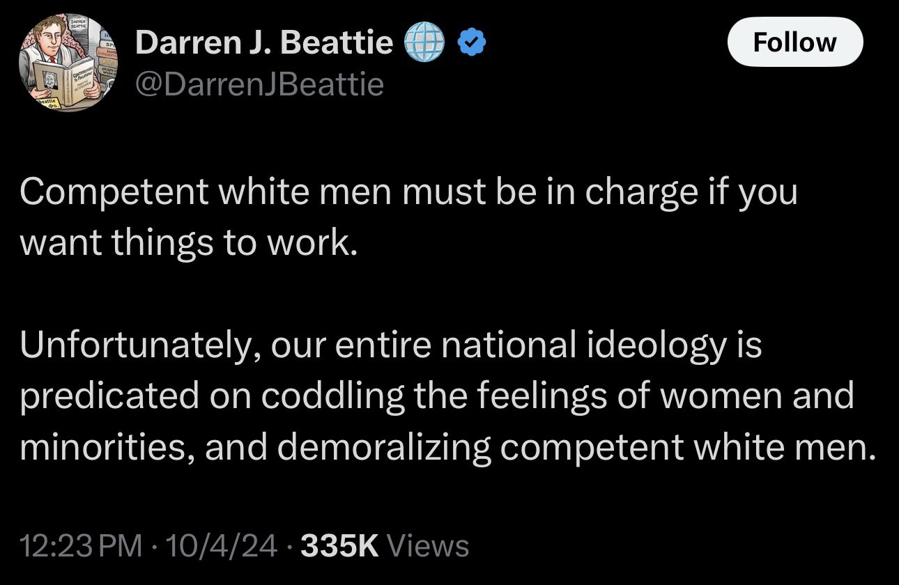 “Competent white men must be in charge if we want things to work," proclaimed Trump-appointed State Department executive services employee Darren J. Beattie.